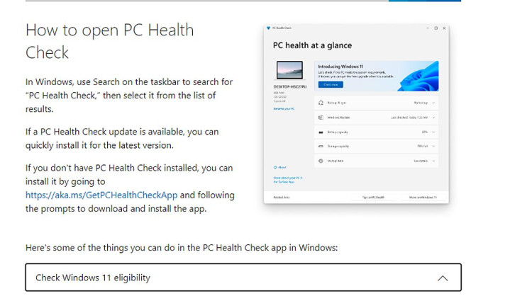 微软自己也知道这要求太离谱,于是出了个“PC 健康检查”工具。