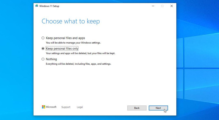 然后点里面的 setup.exe,选择“保留个人文件和应用”,