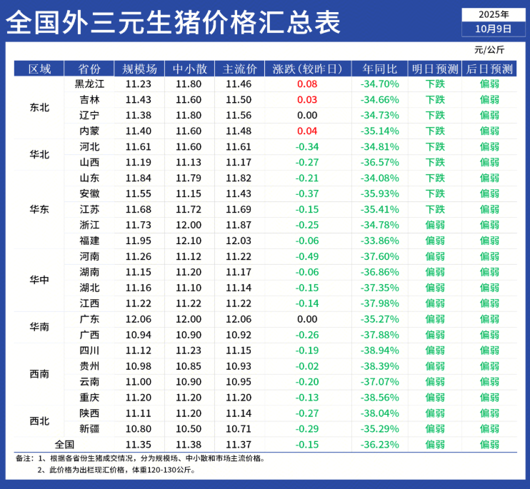 二、【每日外三元生猪现货报价和明日走势预测】